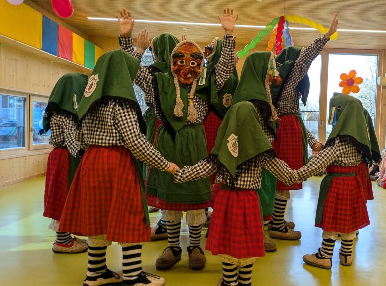 Am gumpigen Donnerstag feierten die Kita-Kinder bei leckerem Buffet, Musik, Tanz und mit Narrenbesuch ihre Kinderfasnet.
